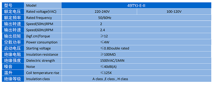 電機主要性能表 SPECIFICATION