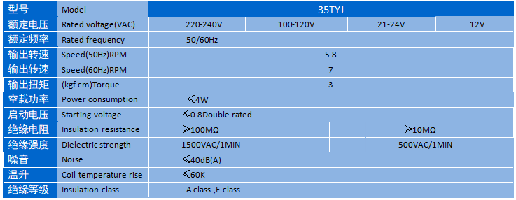 電機主要性能表 SPECIFICATION